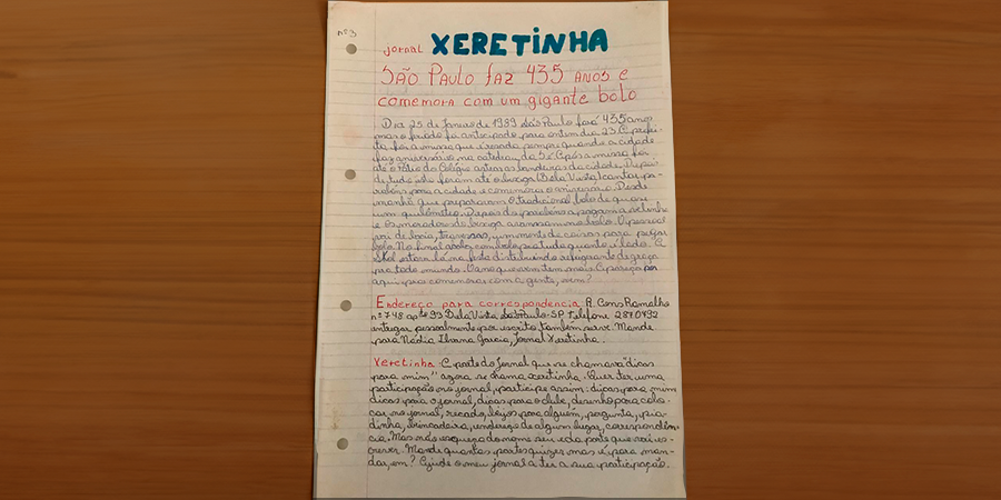 E eis que entre os anos de 1988/1989 eu resolvi montar meu próprio jornal, o Xeretinha. A menina de mais ou menos 11 anos de idade era apaixonada por notícias e criou seu próprio canal de comunicação.