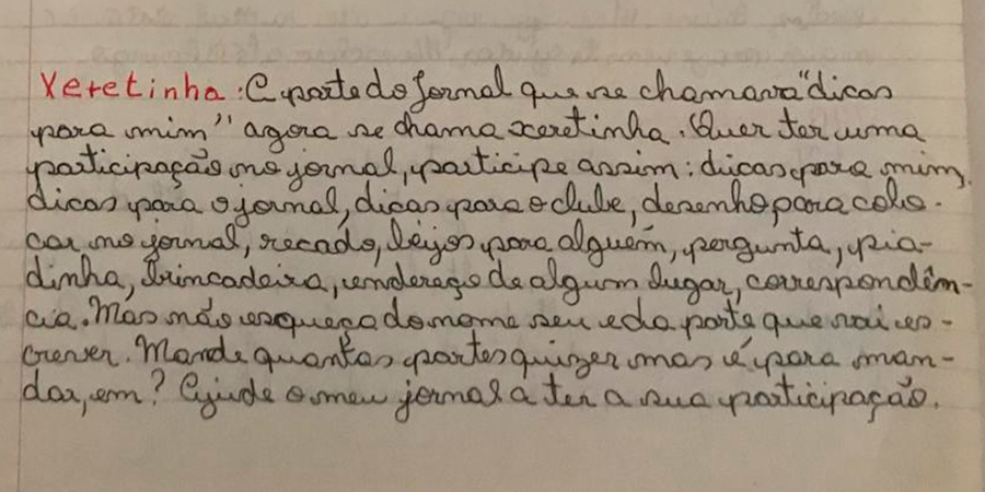 O texto tem erros, mas há de se lembrar que a jornalista tinha apenas 11 anos e um sonho de escrever sobre o Bixiga. Hoje ela é uma das colaboradoras do Portal do Bixiga, canal de comunicação de um dos bairros mais tradicionais de São Paulo.